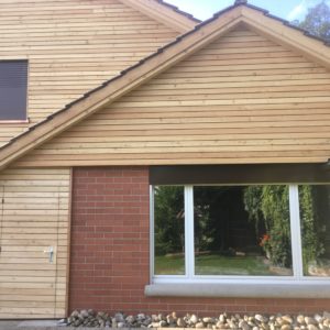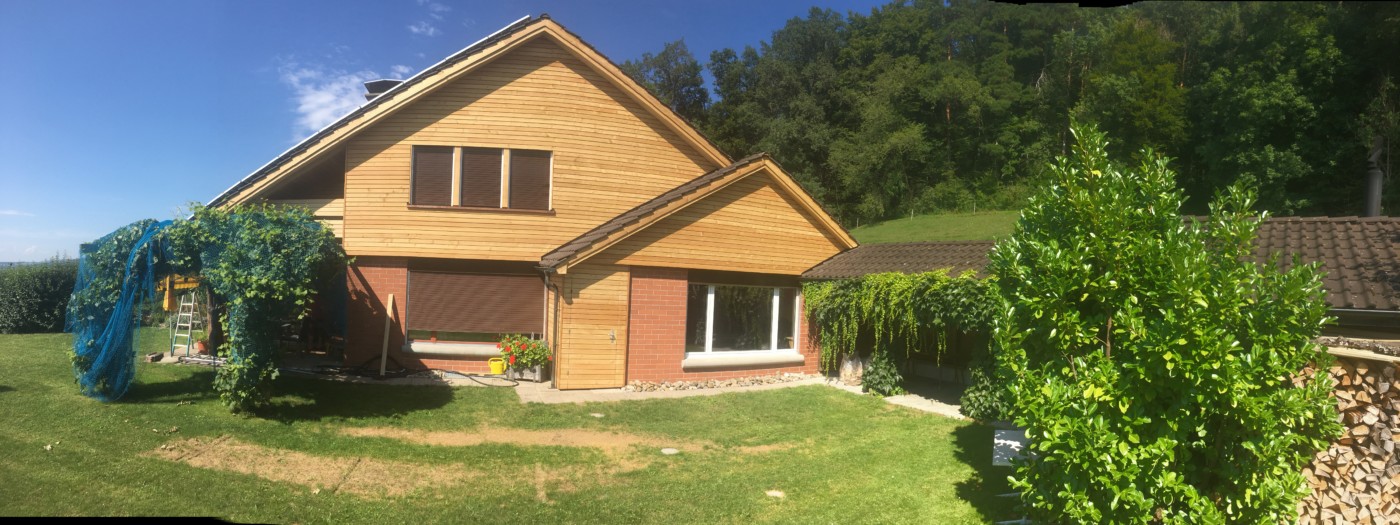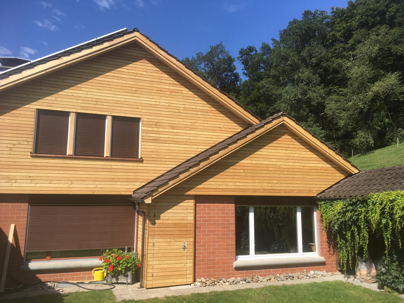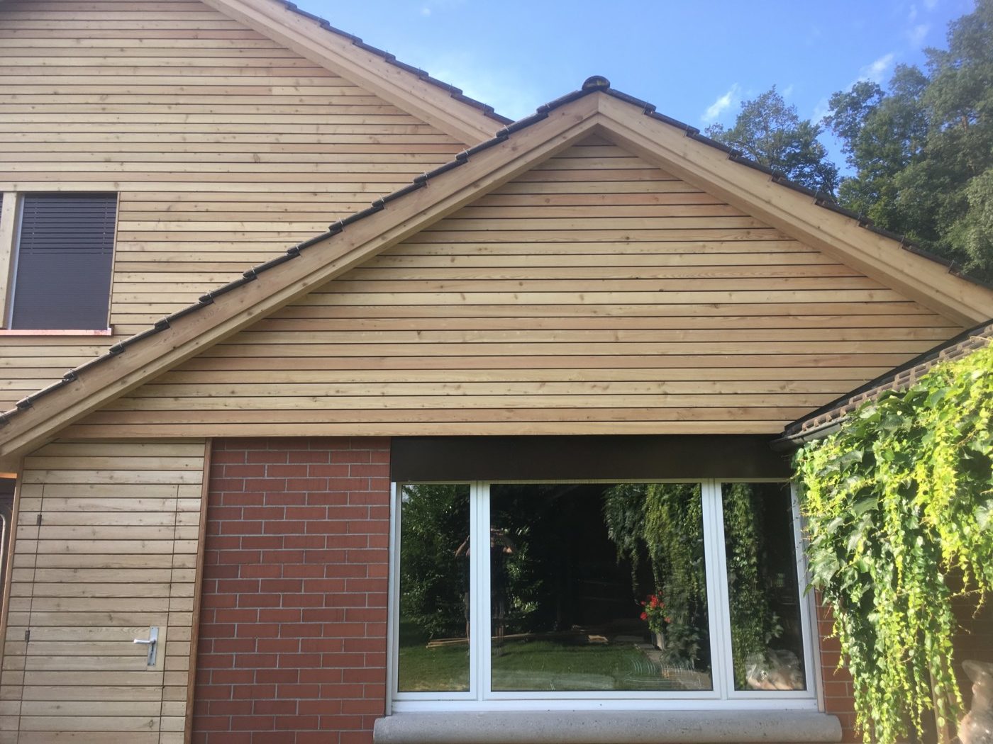 Die alte Fassade würde abgebrochen, Der Fassaden-teil neu Isoliert und neu verkleidet.